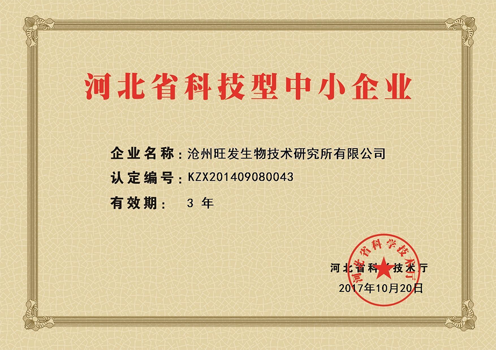 滄州旺發(fā)生物技術(shù)研究所有限公司創(chuàng)立于1993年,是集研發(fā)、生產(chǎn)、銷售于一體的微生態(tài)制劑生產(chǎn)“高新技術(shù)企業(yè)”、“國(guó)家知識(shí)產(chǎn)權(quán)優(yōu)勢(shì)企業(yè)”、“河北省農(nóng)業(yè)產(chǎn)業(yè)化重點(diǎn)龍頭企業(yè)”、“河北省創(chuàng)新型中小企業(yè)”、“河北省專精特新中小企業(yè)”,目前,公司注冊(cè)資金1360萬元,生產(chǎn)占地80畝,擁有液、固態(tài)結(jié)合全自動(dòng)發(fā)酵生產(chǎn)線及標(biāo)準(zhǔn)化全自動(dòng)液態(tài)發(fā)酵、噴霧干燥生產(chǎn)線。